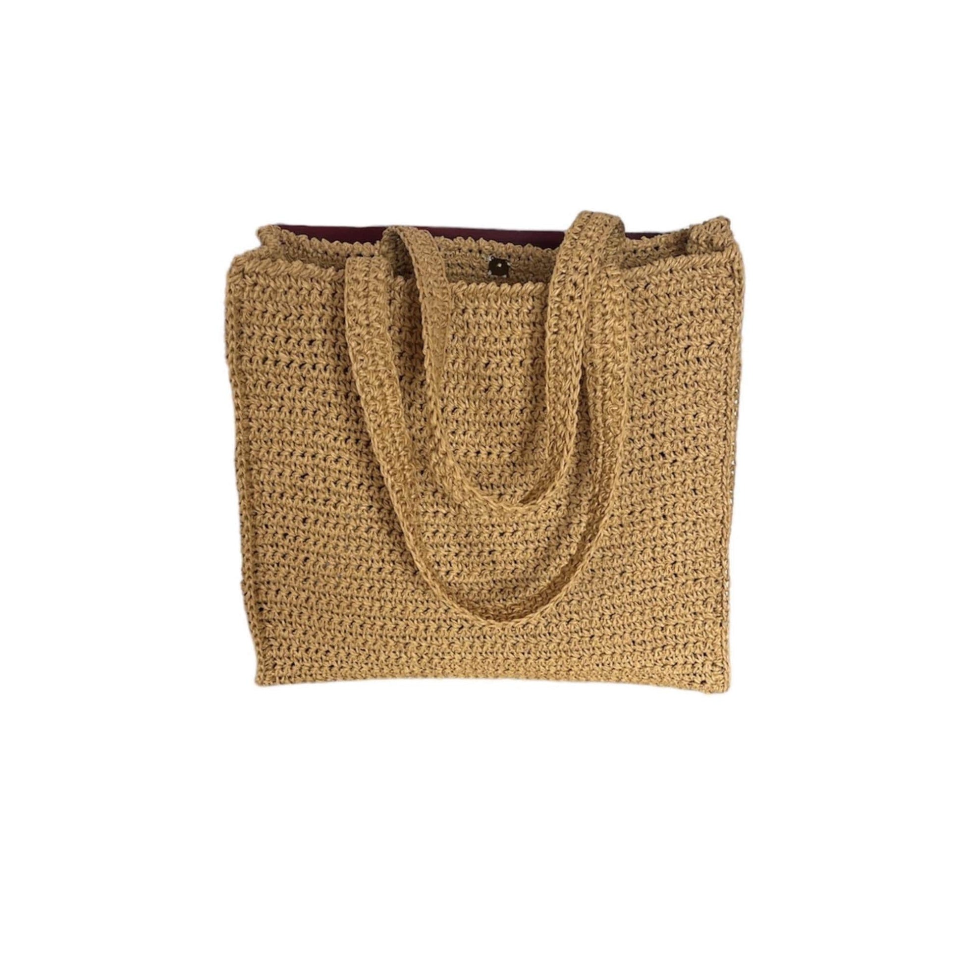 Handmade Raffia Crochet Tote Bag – Eco-Friendly Straw Tote, Natural Summer Beach Bag, Large Shoulder Bag for Everyday Use