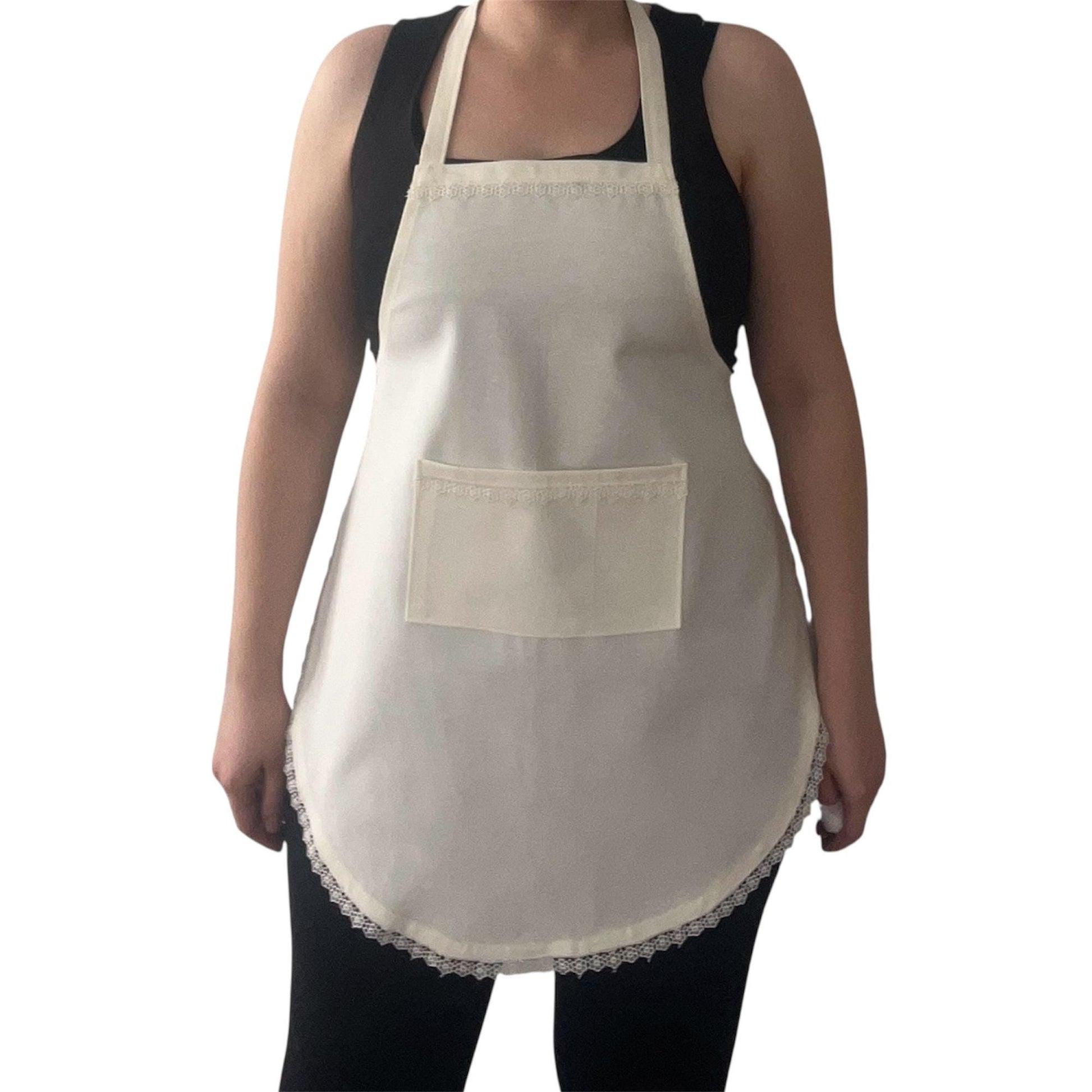 Handmade Ecru Full Apron with Lace Trim & Pocket | Water & Stain Resistant Cotton Blend Kitchen Cooking Apron