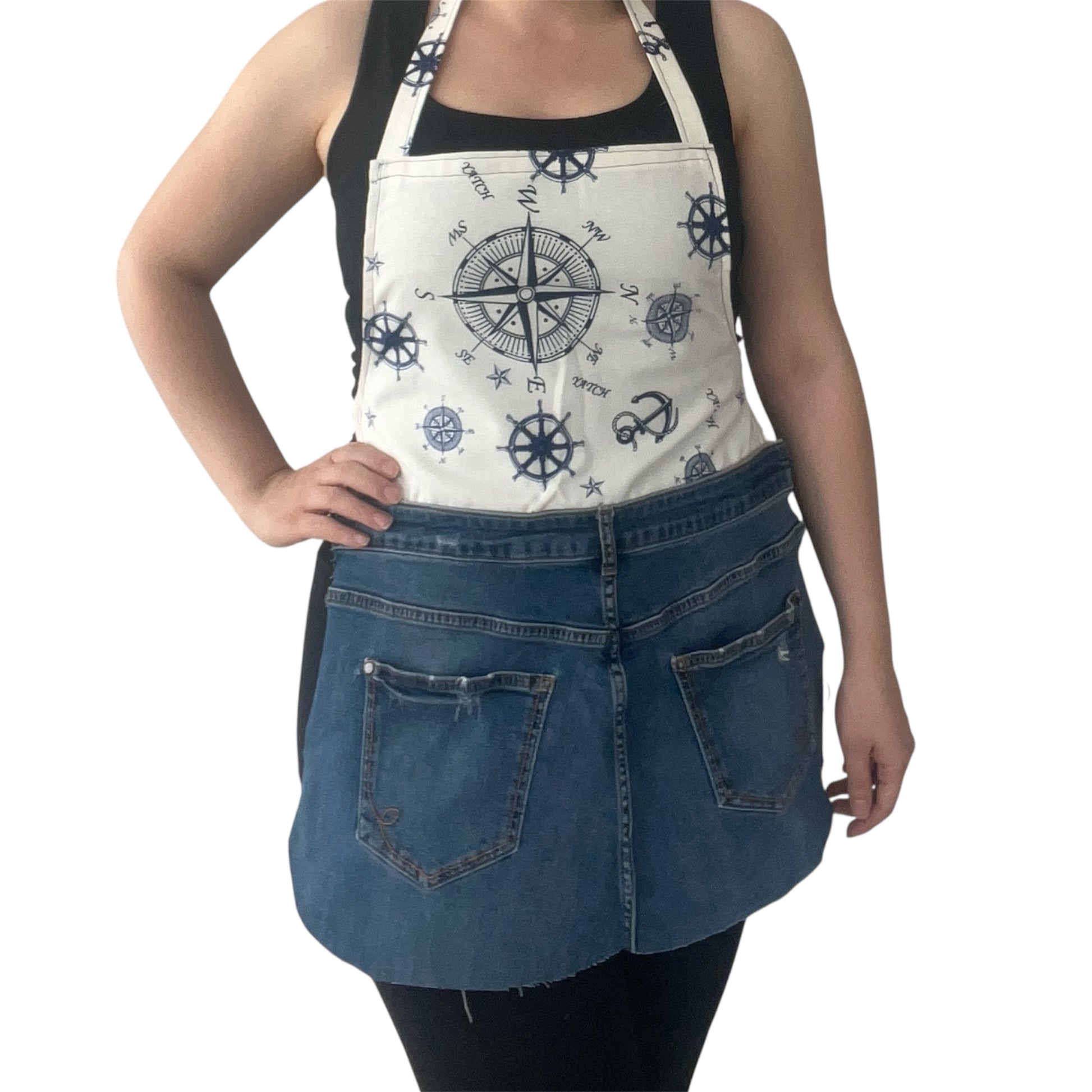 Handmade Nautical Compass Apron – Upcycled Denim Kitchen Apron