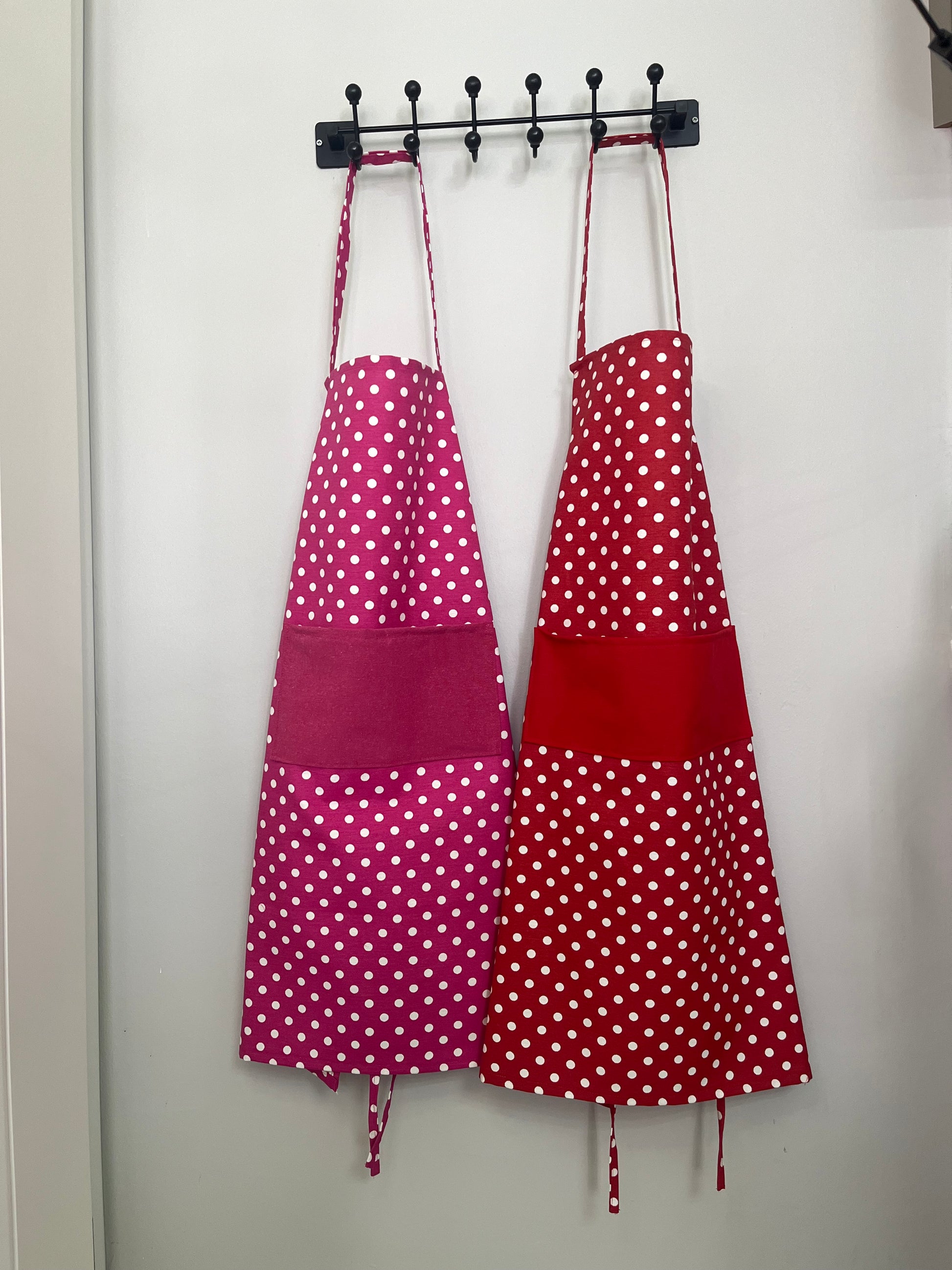 Handmade Polka Dot Apron – Red or Pink | Water-Repellent & Stain-Resistant